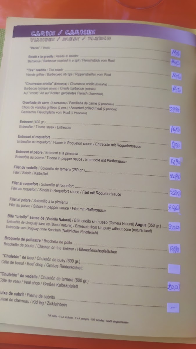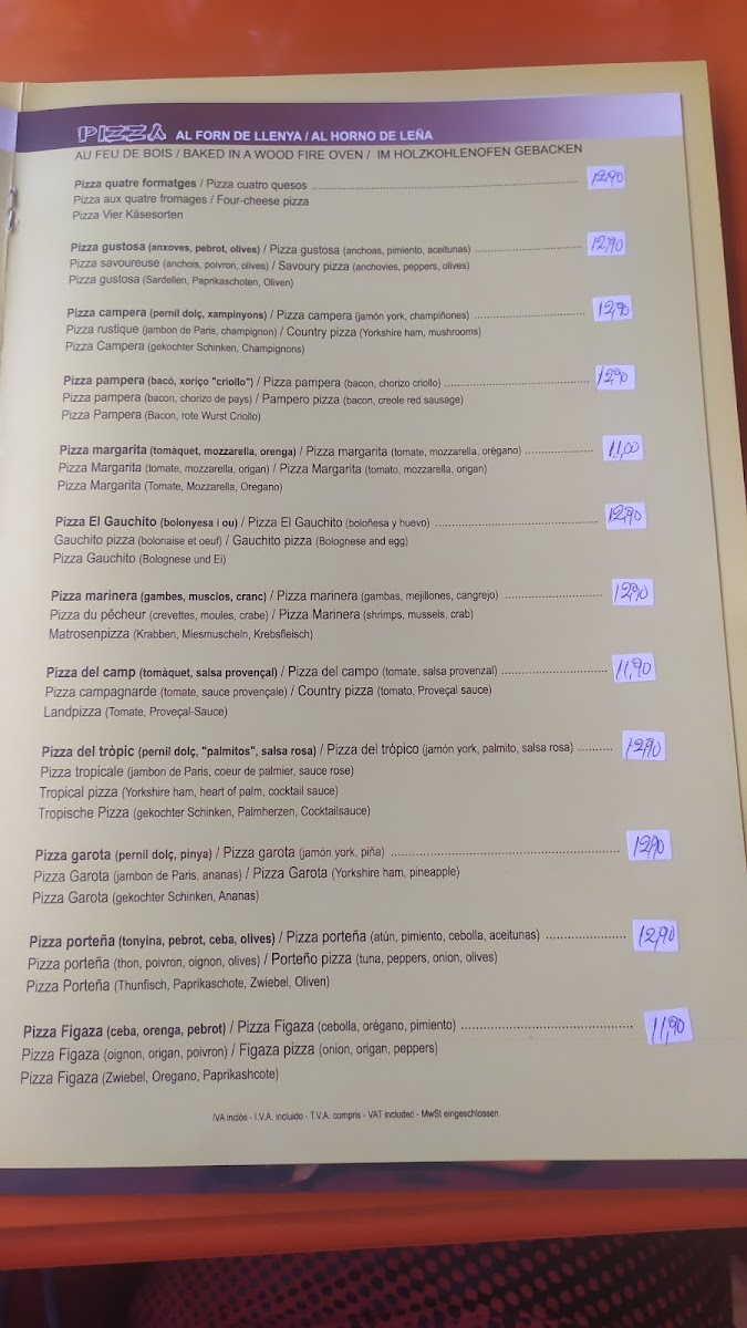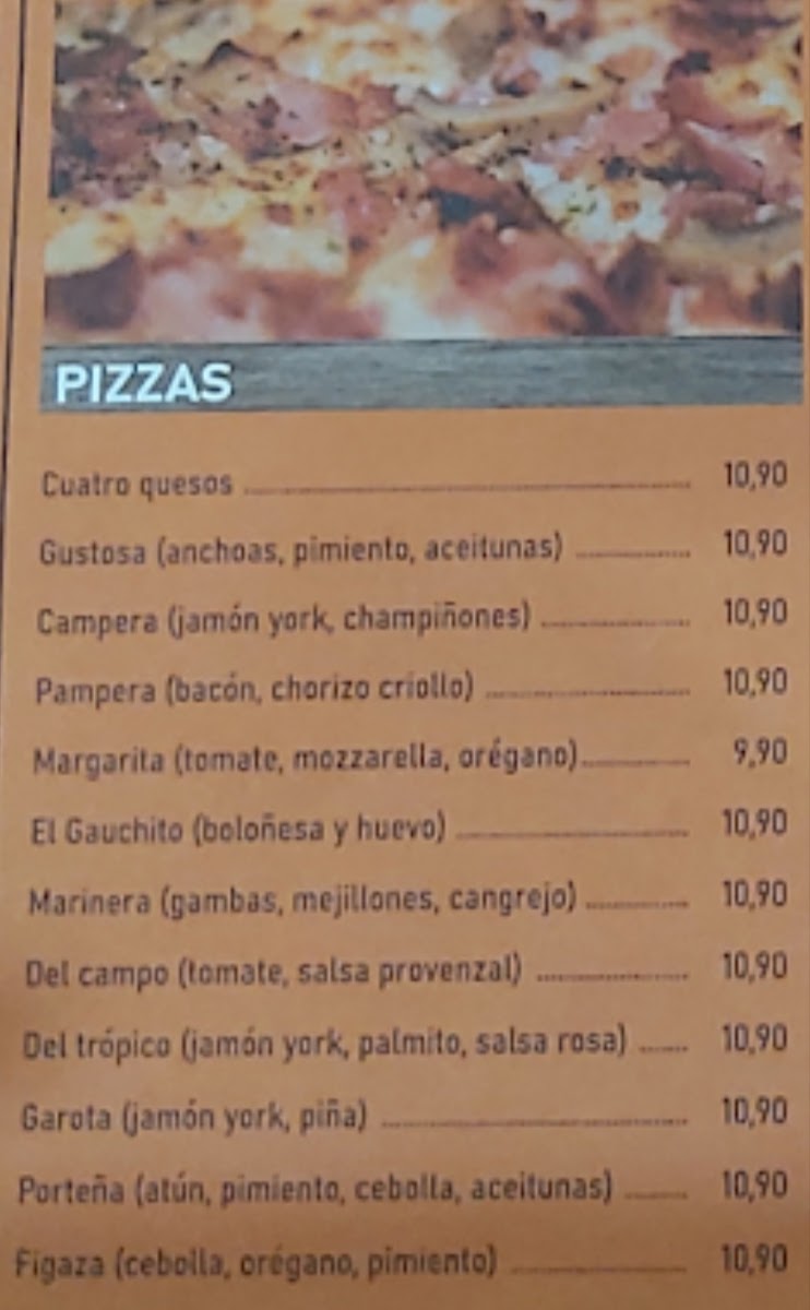 From a reviewer’s standpoint, the menu at Restaurant El Gauchito offers a hearty mix of classic asador and wood‑fired pizza options that reflect its casual Mediterranean‑Argentinian identity. You’ll find signature asado al asador grilled meats alongside an extensive pizza selection from the wood‑fired oven, including crowd‑pleasers like Pizza Queso de Cabra €13.60, Pizza Butifarró €13.90, Pizza Ibérica €13.90, Pizza Pulled Pork €13.90, Pizza ll:3O €14.40, and Pizza Casi 1 Kilo €14.90, each layered with fresh ingredients and generous toppings. Beyond pizzas, the menu features other satisfying choices such as Bocadillo Gauchito Deluxe €14.20, a substantial sandwich with grilled entraña, and the robust Bacon‑BBQ Burguer XXL €14.70, as well as grill staples like Entraña €16.30 and the generous Don Chuletón (750 g) €31.50. Light starters such as Patatas Bravas €6.20, Chorizo Criollo €7.90, and Provoleta €7.80 set the tone, while hearty mains and pizzas anchor the menu with approachable prices that suit both laid‑back lunches and relaxed dinners.